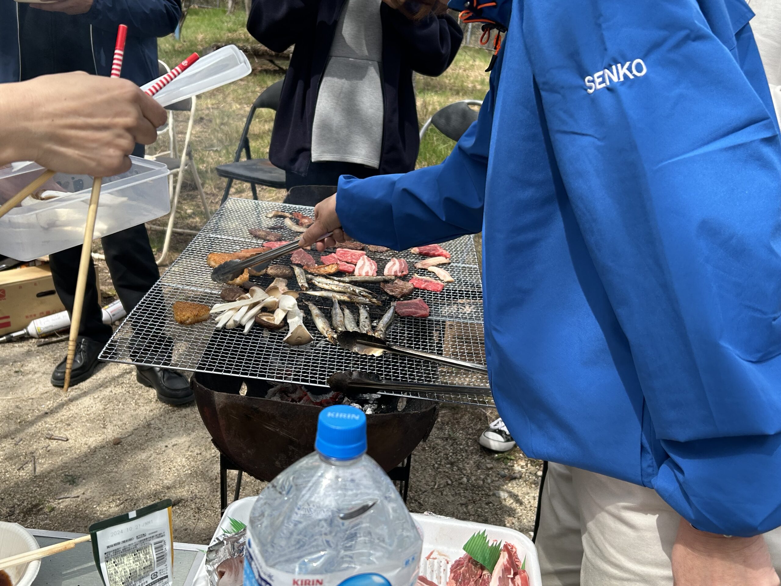 お肉やソーセージ、ししゃも、エリンギ等、どんどん焼いていきます。