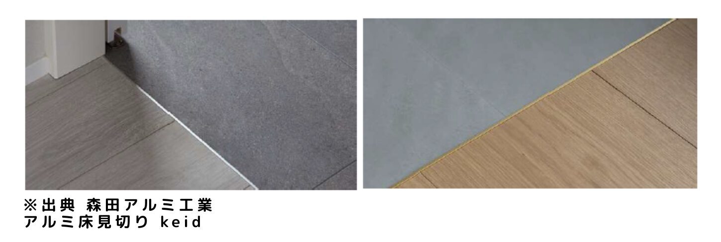 部屋や水回りスペースなど、異なる床材が隣接する場所には「見切り材」を用いるのが一般的です。