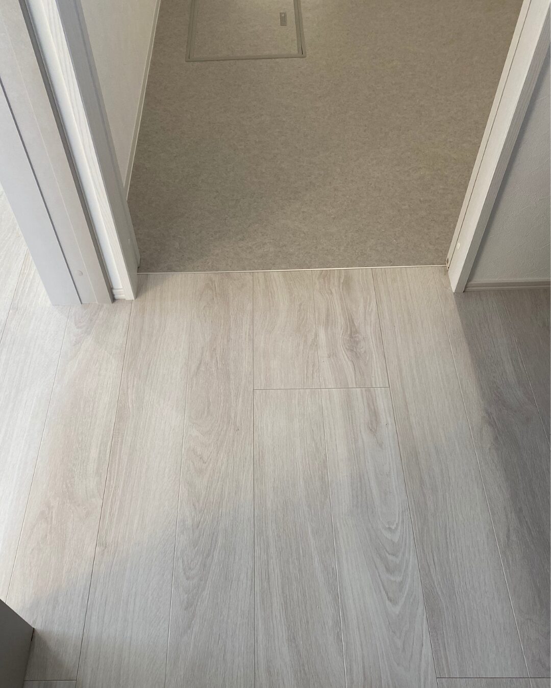 つなぎ合わせるどちらかの床色に揃えておくことで、遠目で見ても自然に見え、空間をより広く感じさせる効果があります。
