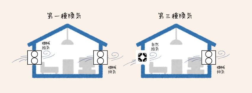 住宅で主に採用される「第一種換気」と「第三種換気」について簡単にご紹介します。