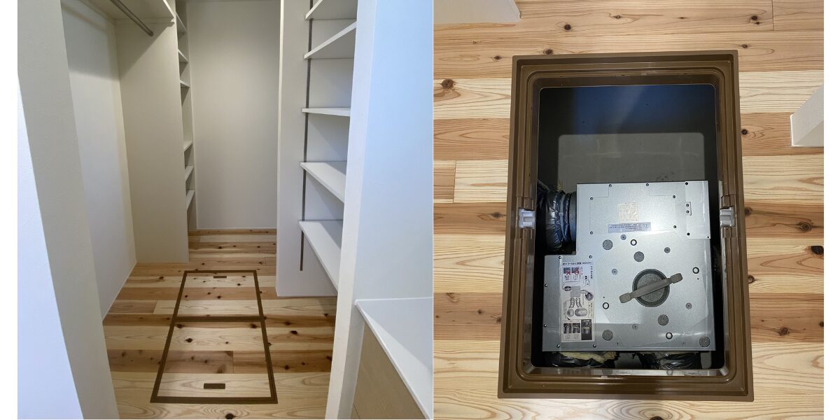 熱交換機は床下に設置されており、フタはマグネット式のため、上に持ち上げるだけで簡単に開閉できます。