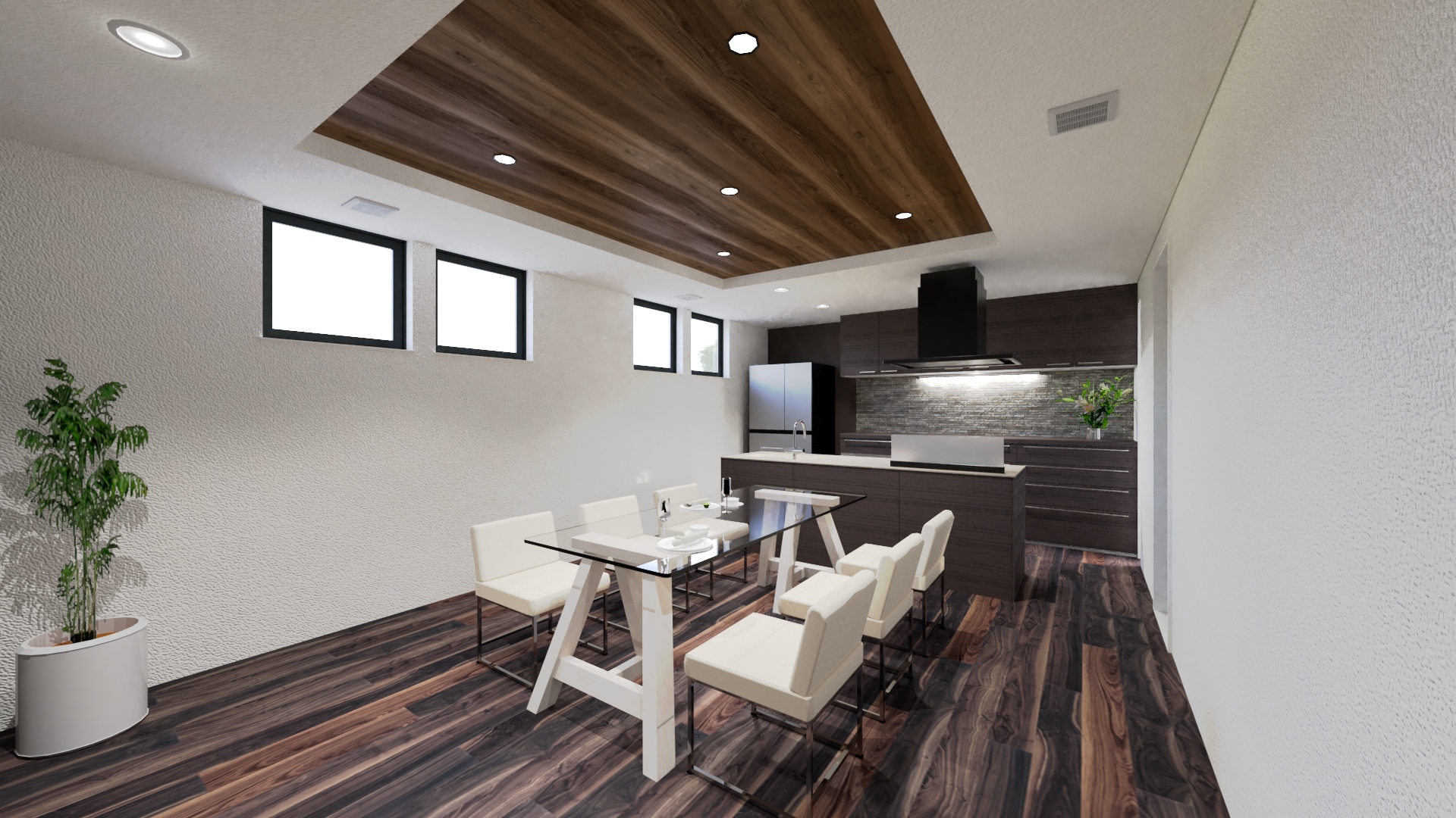 ■1階は15.75帖の折り上げ天井のダイニングキッチンと11.37帖のゲストルーム、家族が主に過ごすリビングは2階に。