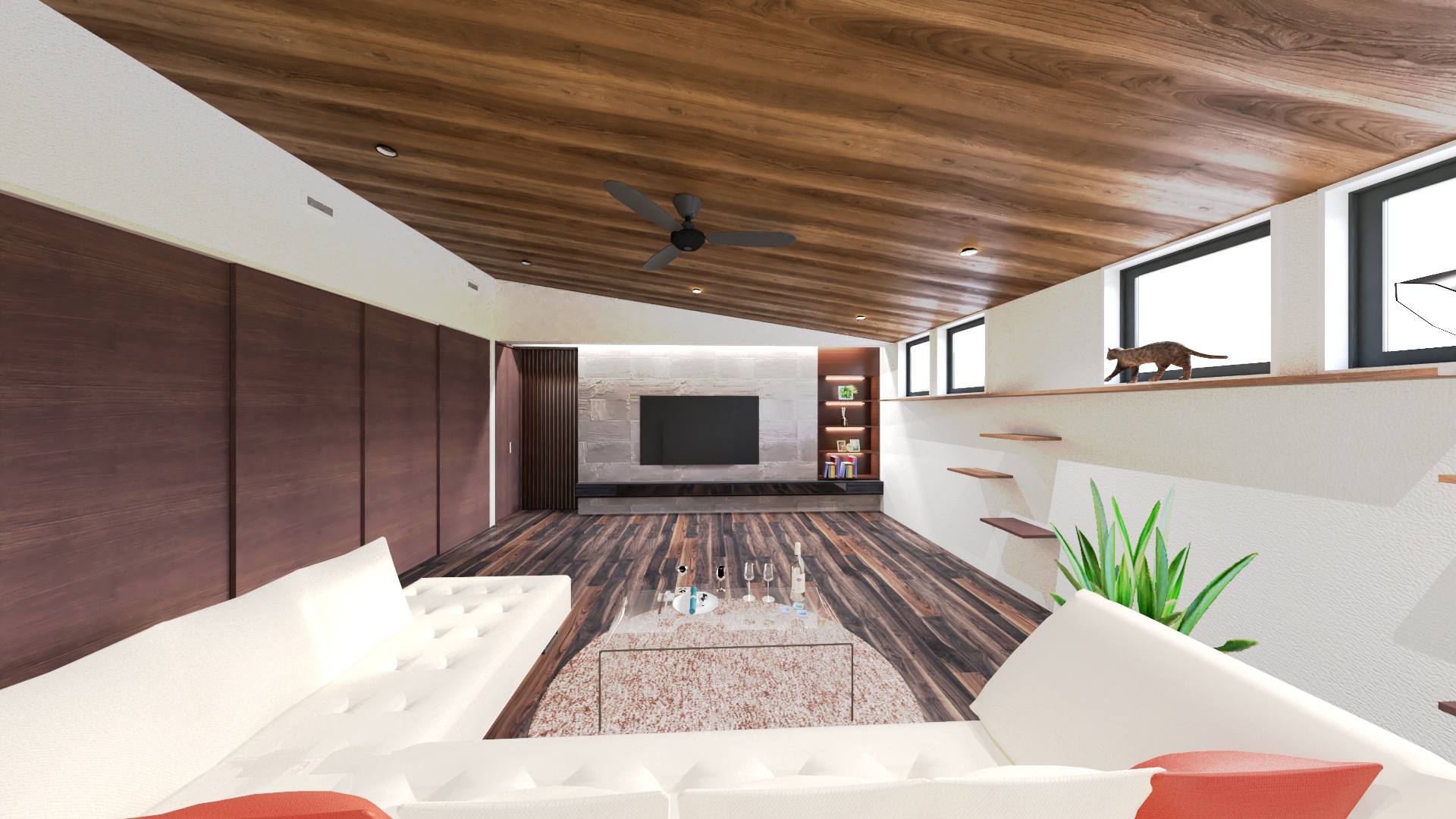 主寝室から入れる猫さんのお部屋や、リビングには猫ステップ、猫さん用窓台配置。