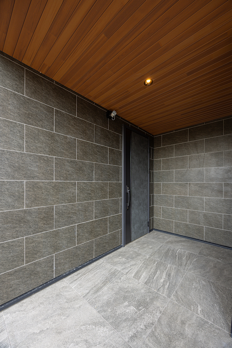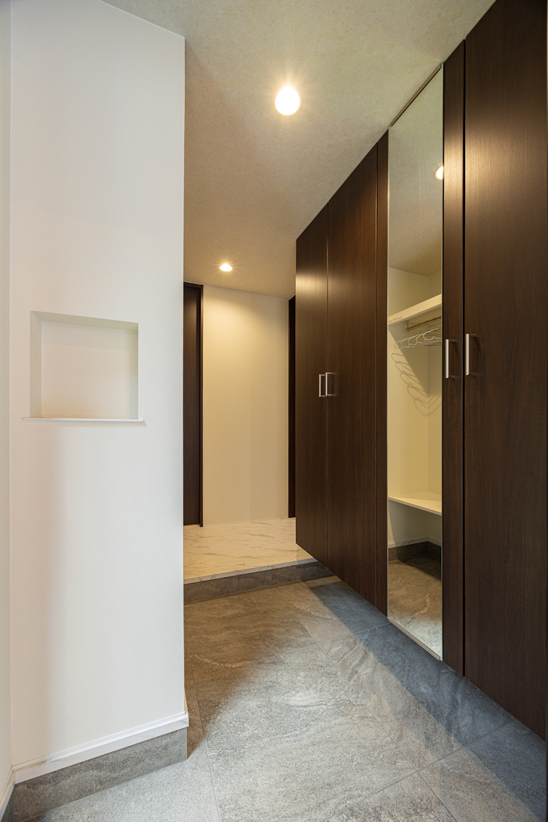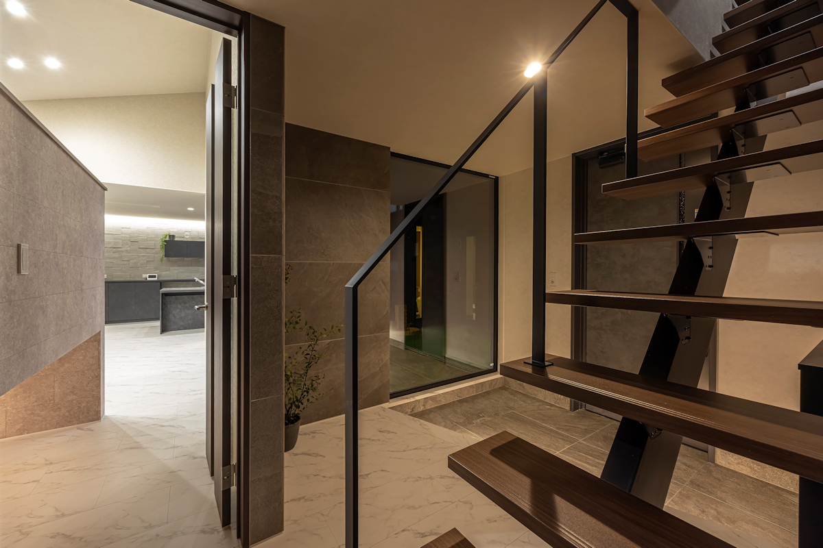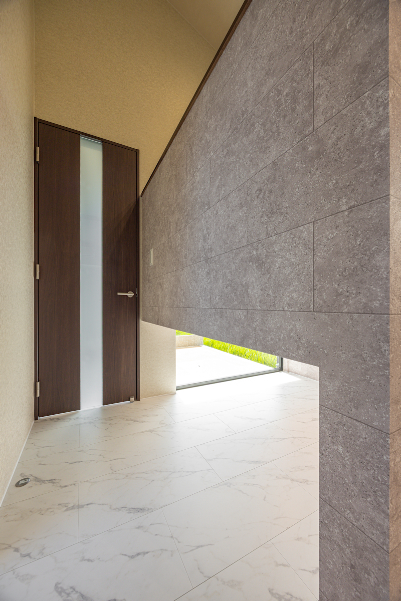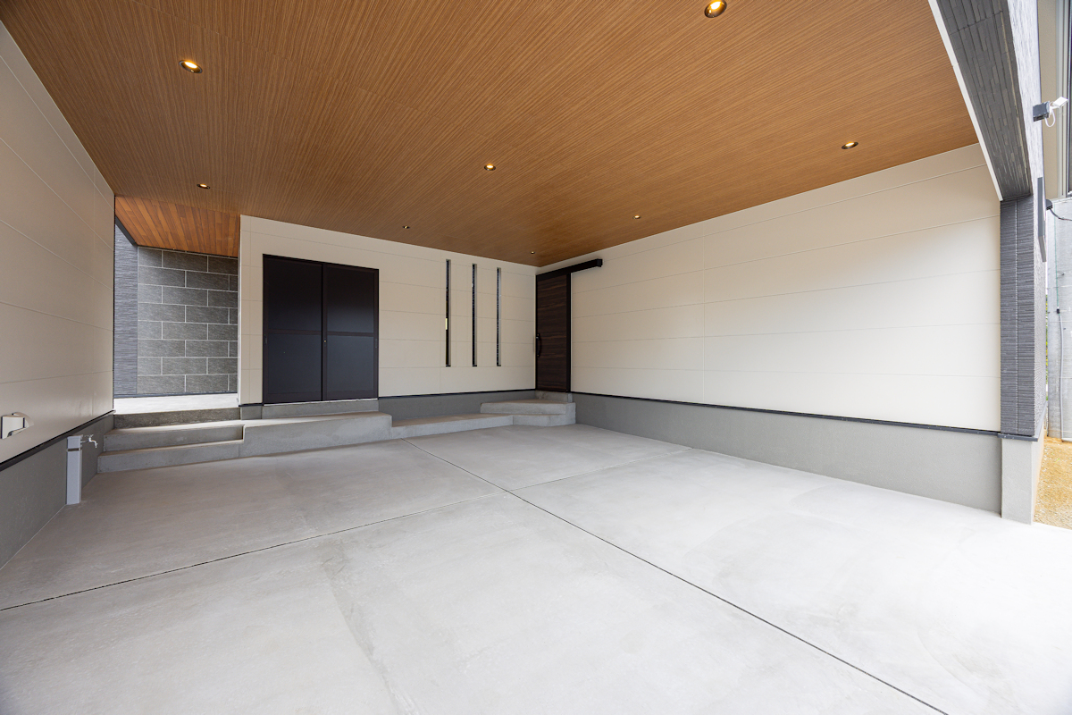 インナーガレージから入れる「お客様用」とは別に「家族用」の玄関を使い分ける暮らし方。