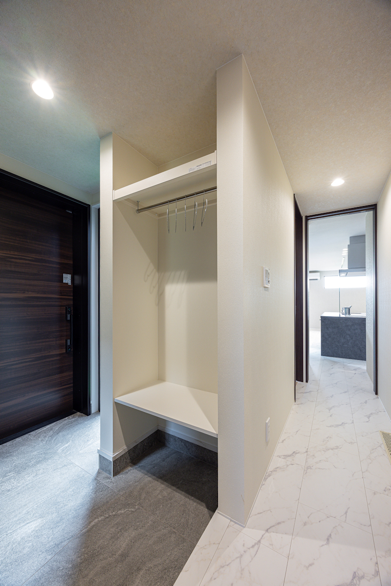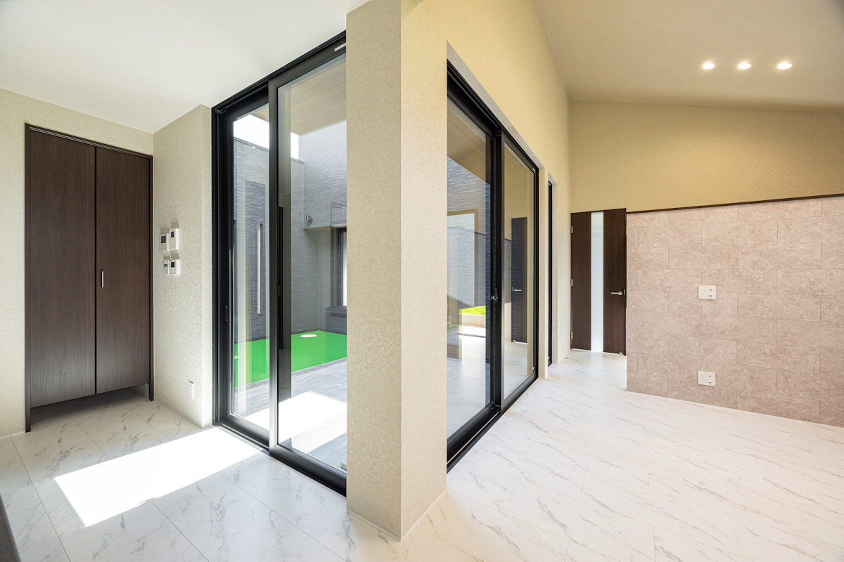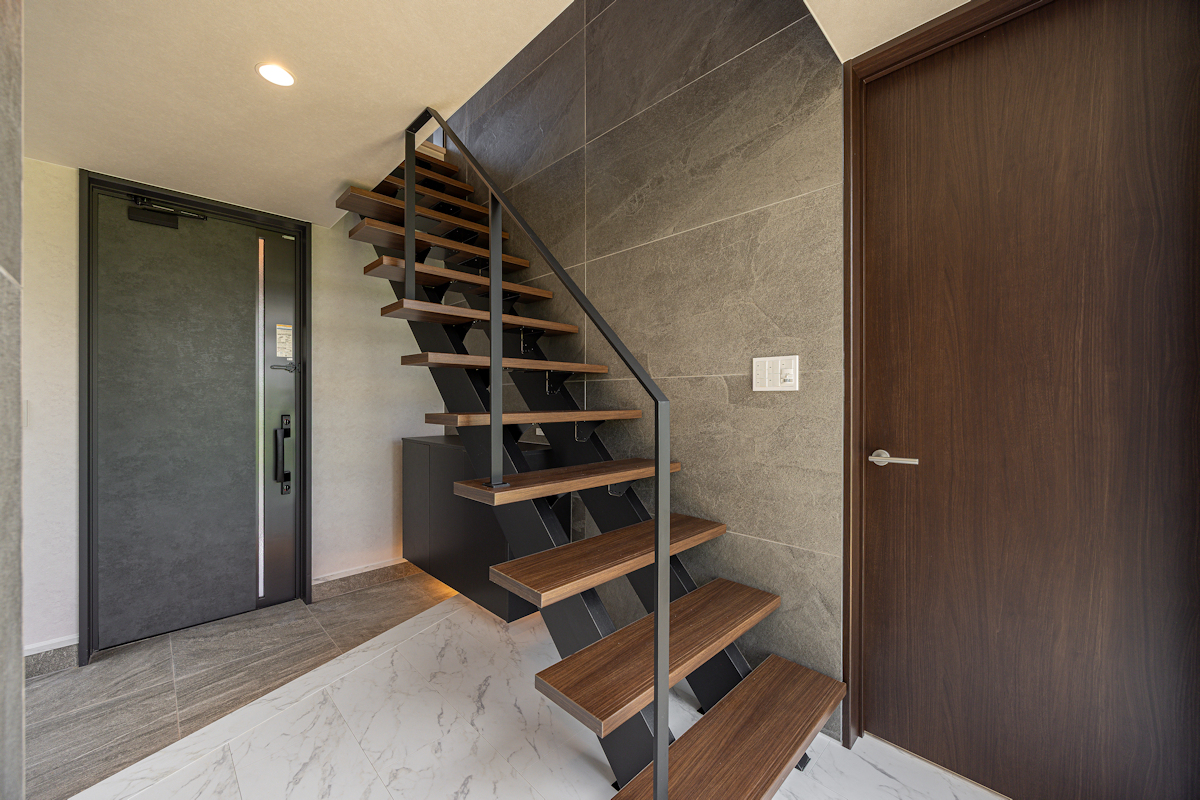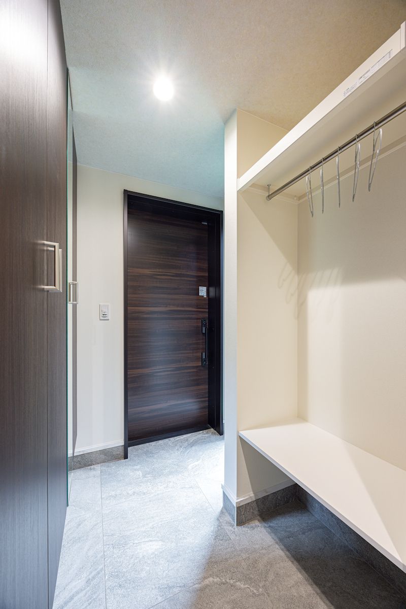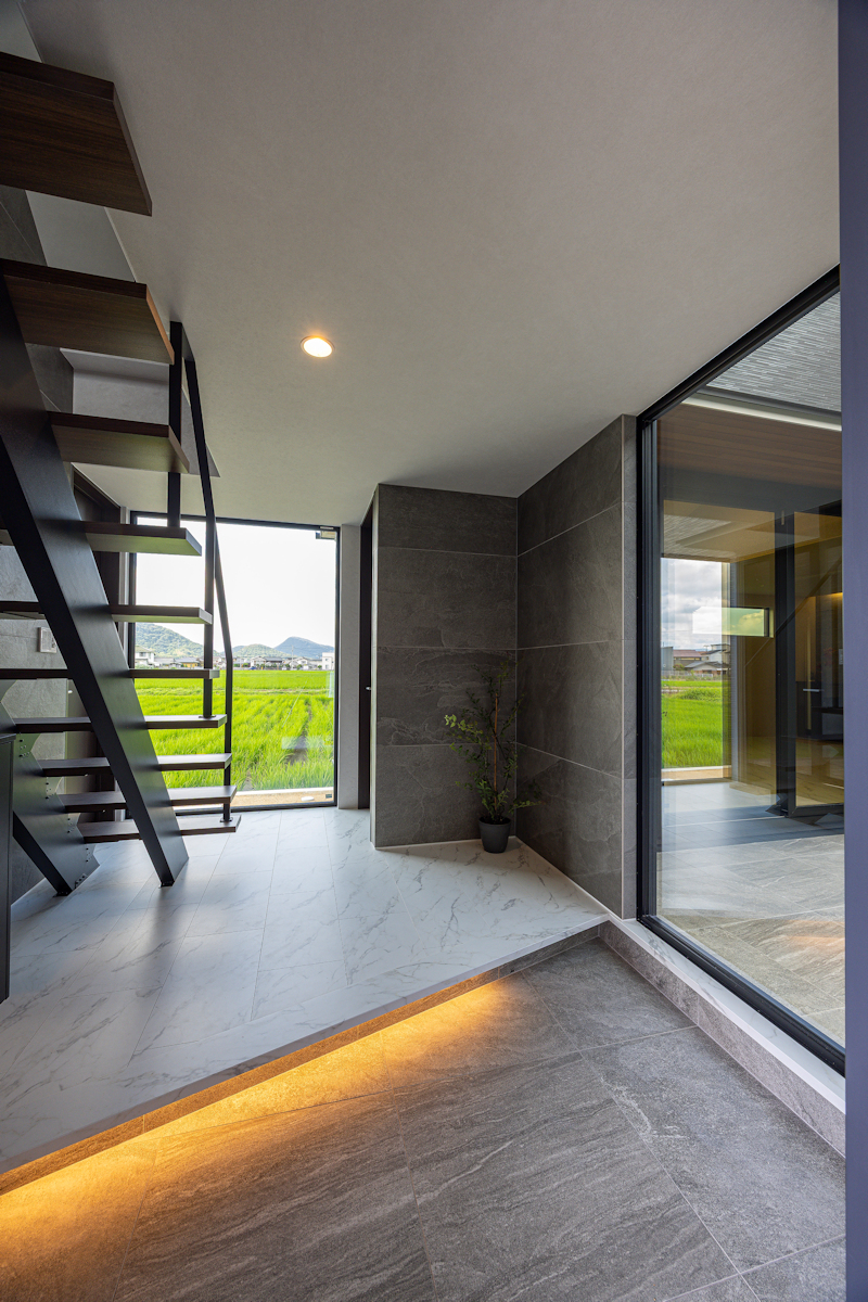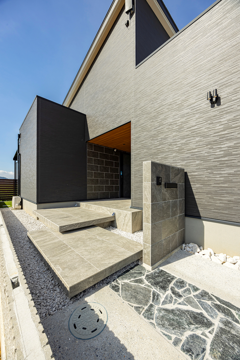 インナーガレージから入れる「お客様用」とは別に「家族用」の玄関を使い分ける暮らし方。