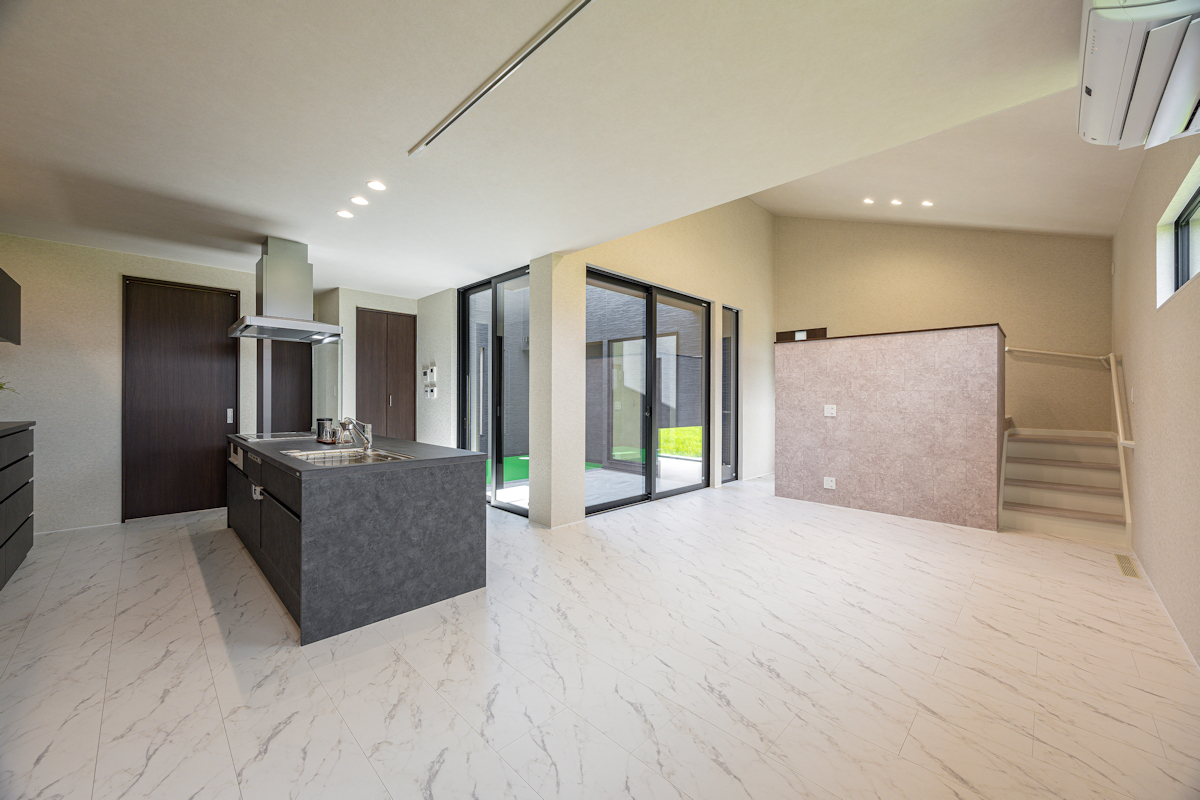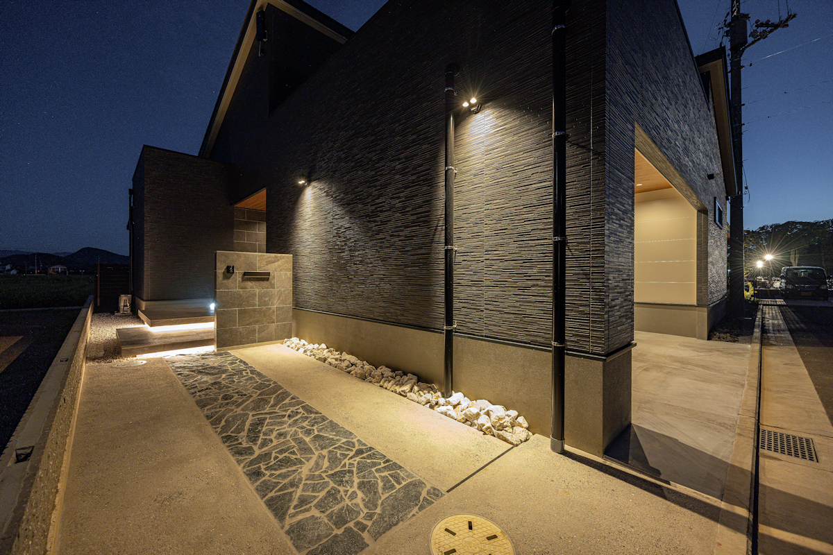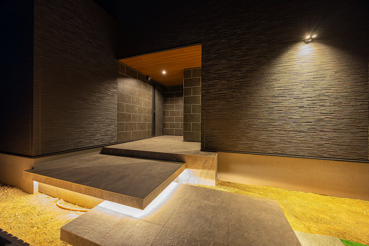 玄関アプローチ、キッチン、トイレに上品な雰囲気を演出する間接照明を設置。